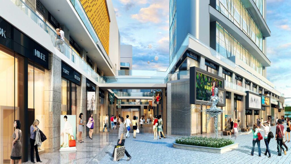 A shopping mall or shopping center is a building or set of buildings which contain retail units, with interconnecting walkways enabling visitors to easily walk from unit to unit.